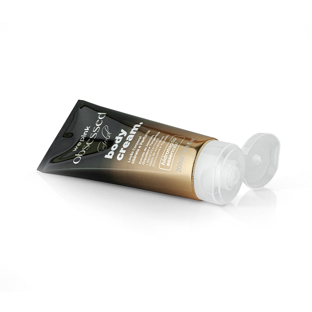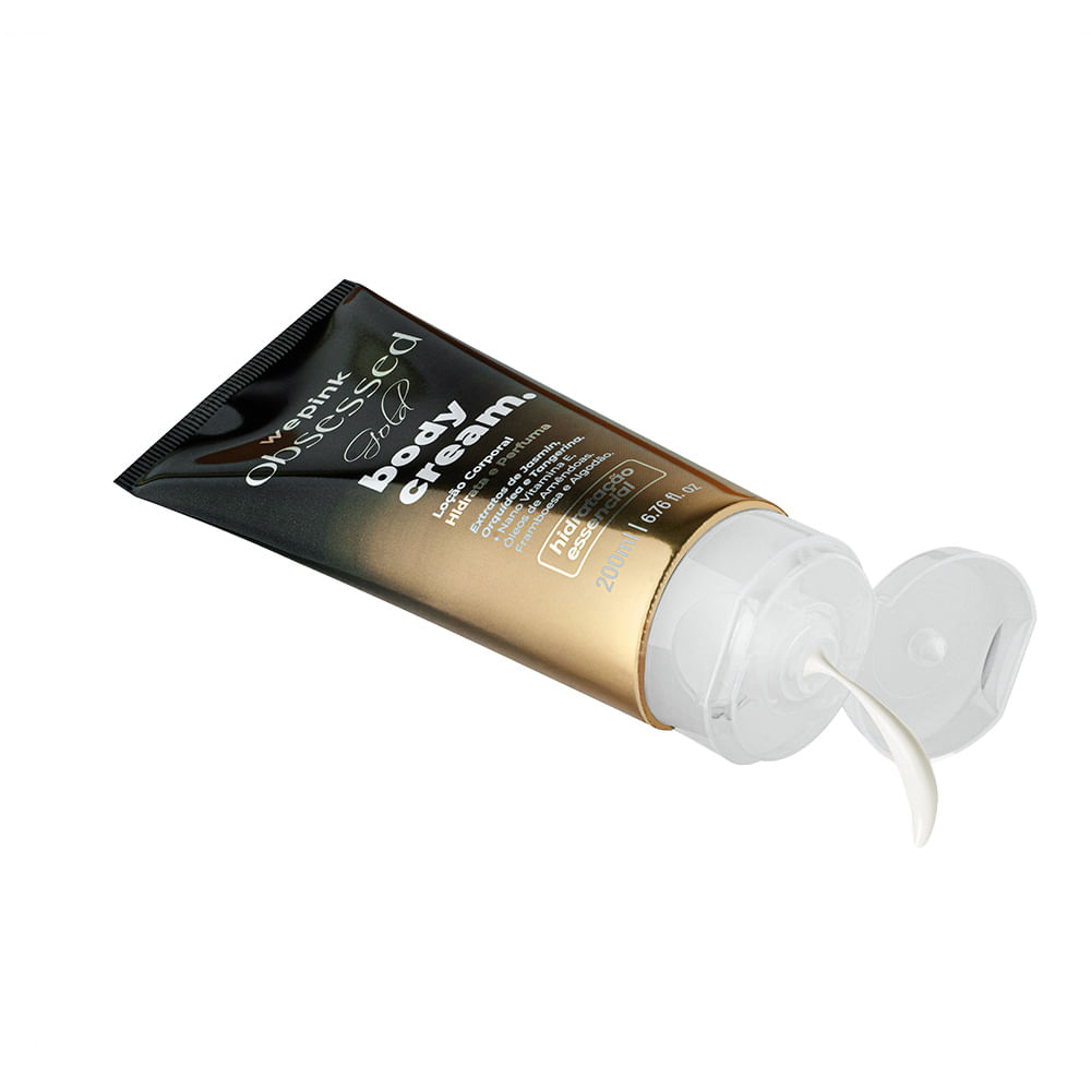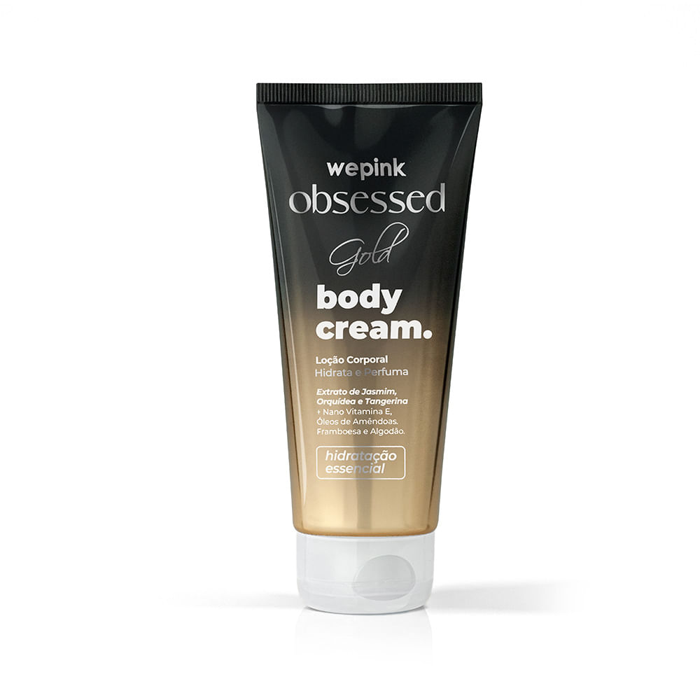 A Loção corporal Body Cream Wepink Obsessed Gold Desodorante Hidratante tem um toque macio, que proporciona hidratação, nutrição e firmeza, pois sua composição auxilia na produção de colágeno e regeneração celular, além de deixar a pele com um aspecto saudável e brilhoso. Seu aroma evoca notas exuberantes em um caminho olfativo Floral Oriental, começa com toque de frutas, em um coração floral composto pela grandeza da gardênia e a delicadeza do néroli e jasmim, finalizando agradavelmente com um aroma doce e amadeirado.